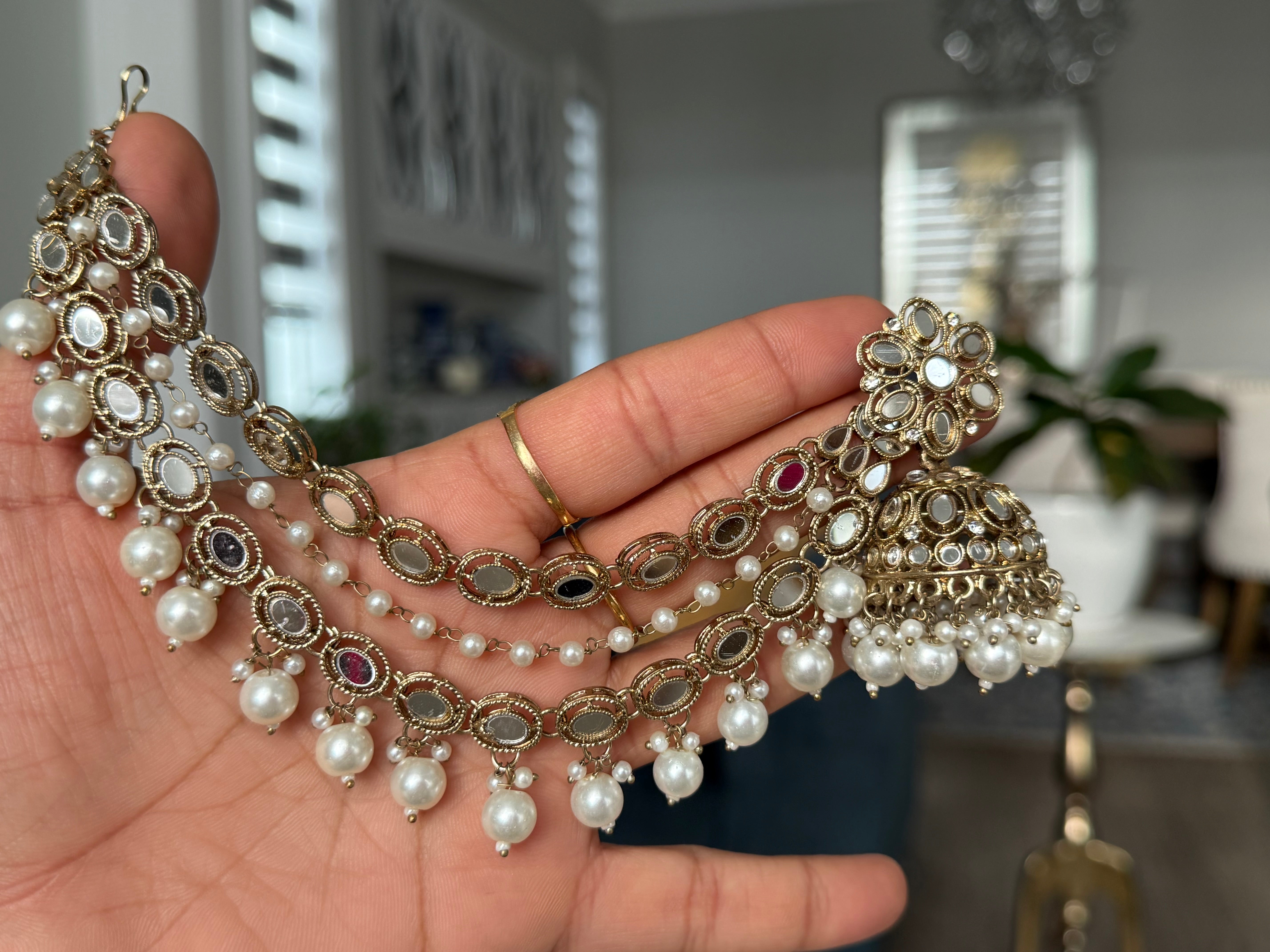Brighten up any outfit with our Mirror Earrings, beautifully crafted with vibrant Mirror stones and beads on a durable high-grade alloy metal base. These eye-catching earrings are a perfect statement piece for celebrating special occasions or adding a splash of color to your everyday look.