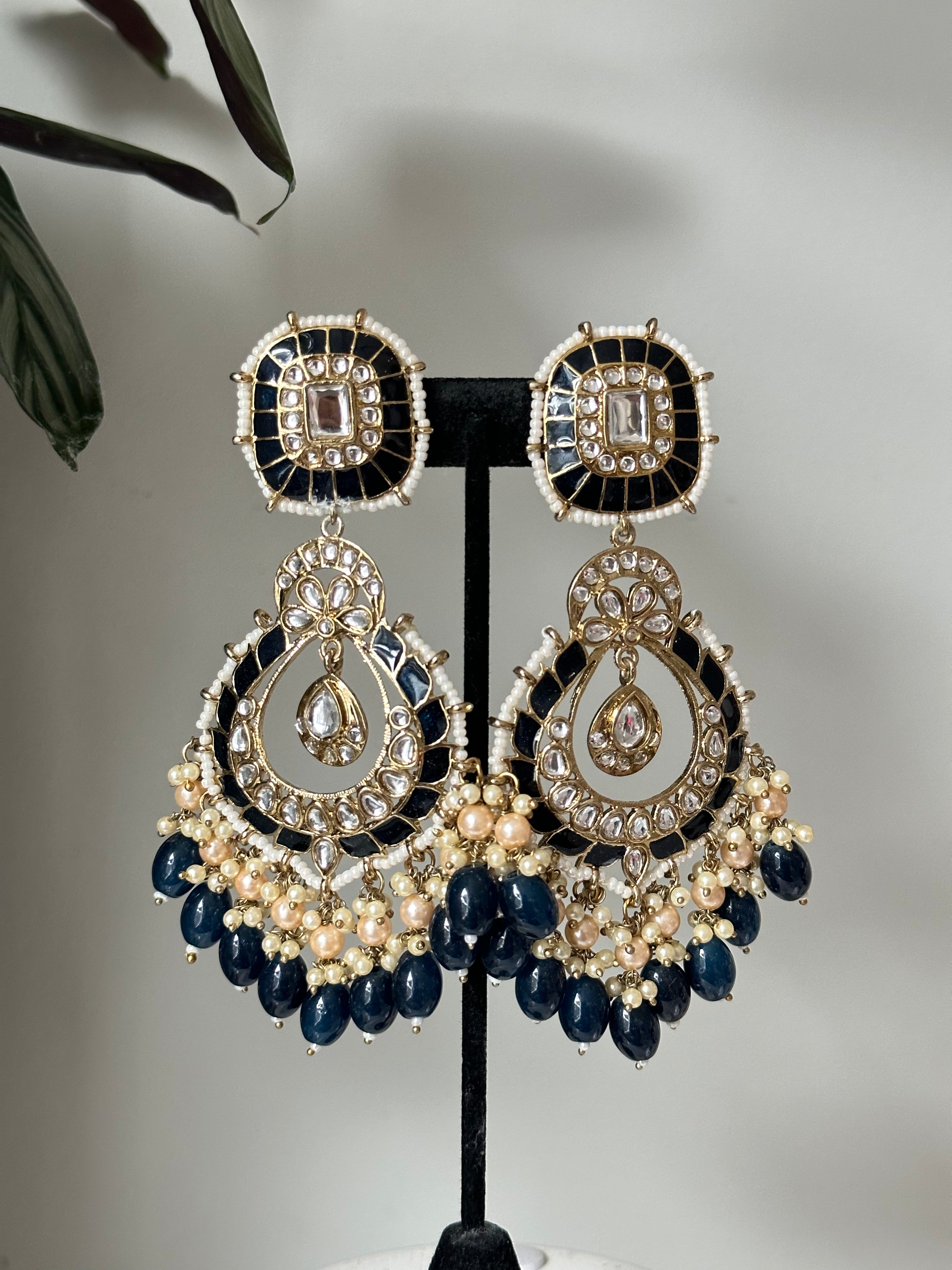 Discover the perfect blend of traditional charm and contemporary elegance with our Teal Blue Meena Kundan Earrings. These exquisite earrings are a testament to classic Indian jewelry artistry.