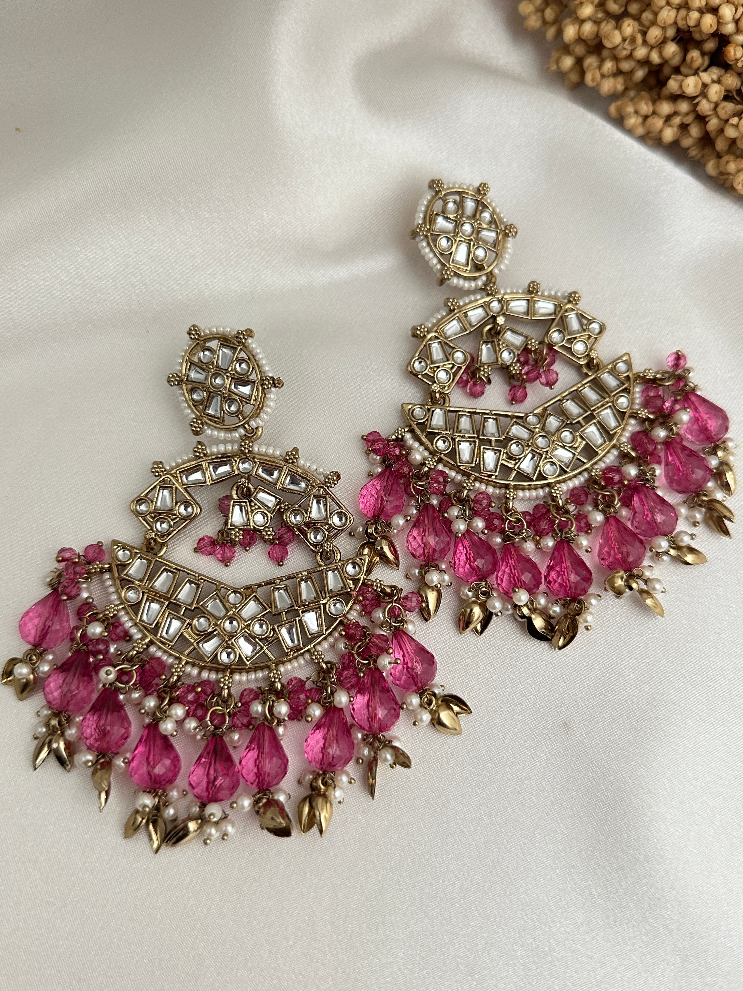 Introducing our exquisite Wine Pink Kundan Earrings, delicately detailed with piple patti accents for a touch of elegance. Crafted with faux Kundan stones and beads on a high-grade alloy metal base, these earrings are sure to add a vibrant splash of color to your ensemble, making them perfect for special occasions
