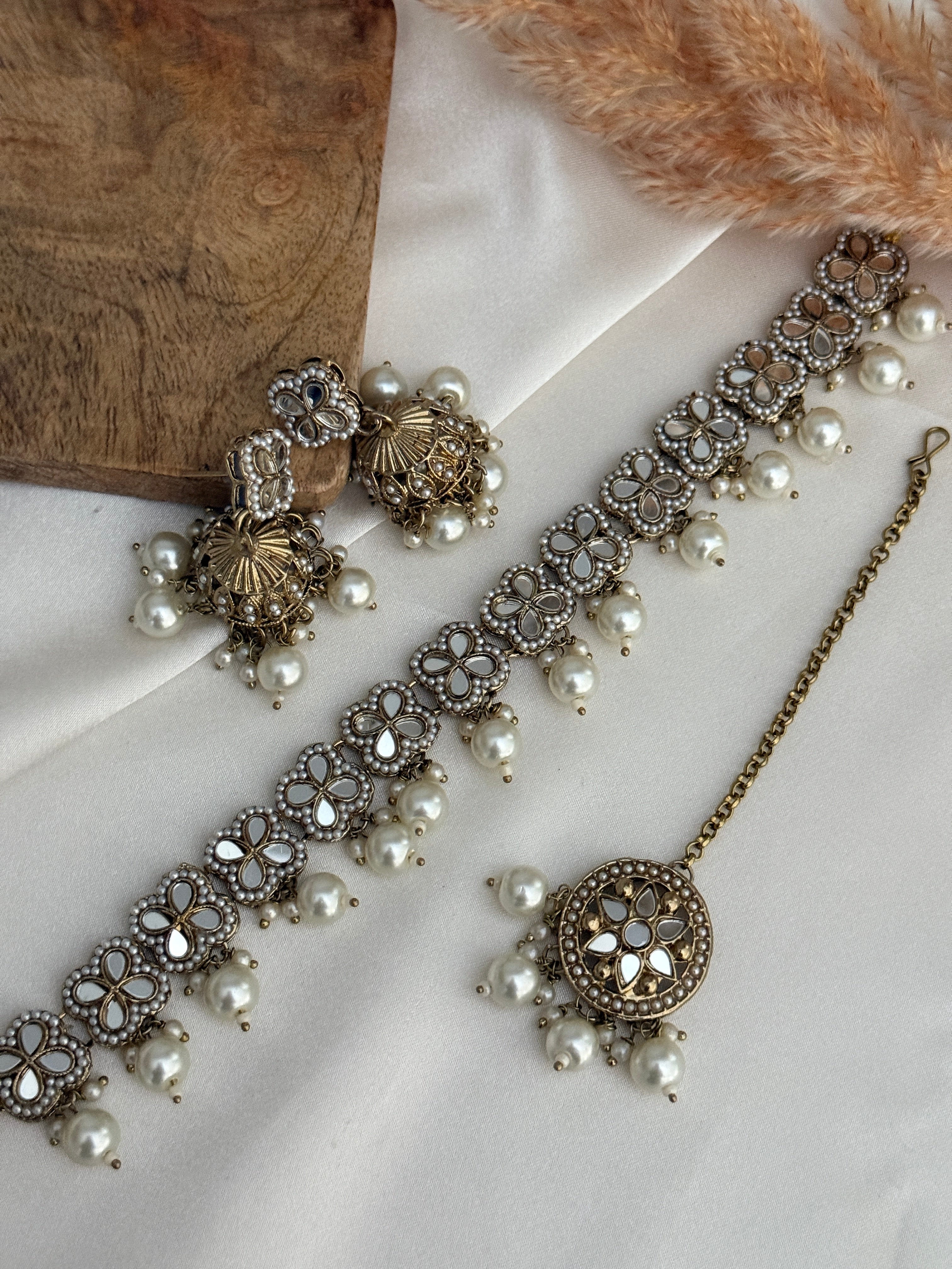 Adorn yourself with our Pachi Kundan Choker Set, featuring faux Pachi Kundan stones and beads. Crafted from high-grade alloy metal, this set includes a choker and earrings, perfect for adding a touch of elegance to your look.
